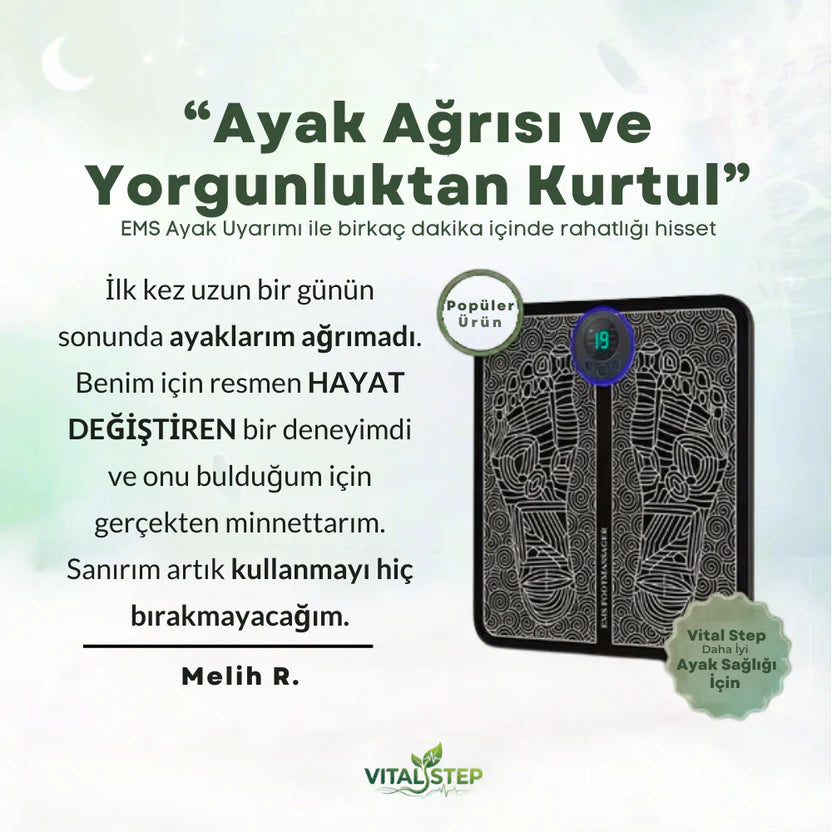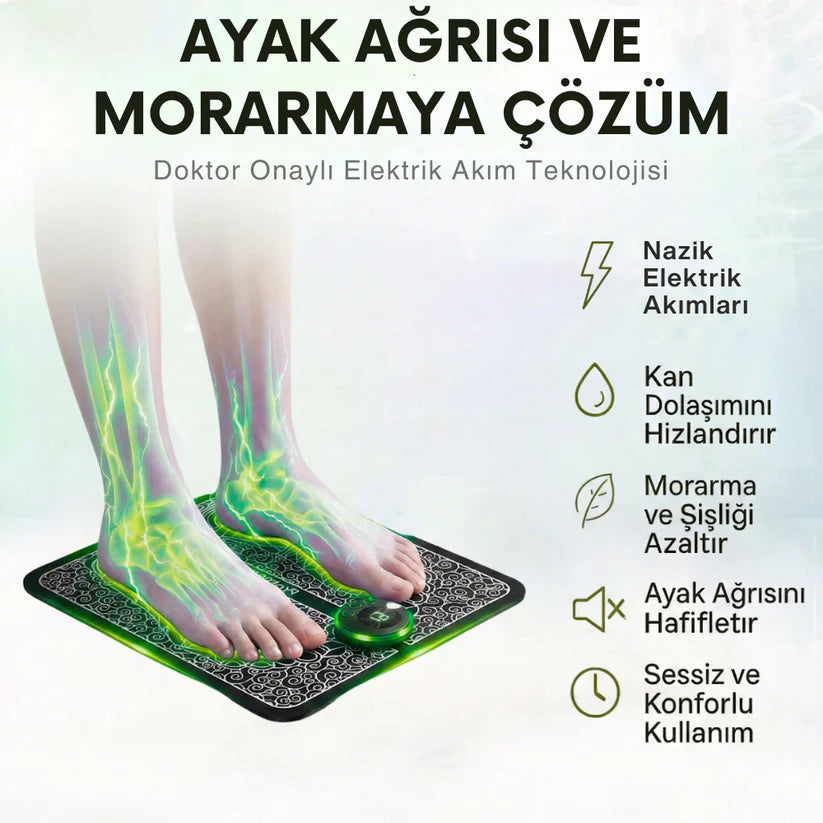 Bilimsel verilerle desteklenen bu yenilikçi teknoloji, nazik elektriksel uyarımlar kullanarak dolaşımı artırır, şişliği azaltır ve ayak ağrılarını doğal bir şekilde hafifletir.
